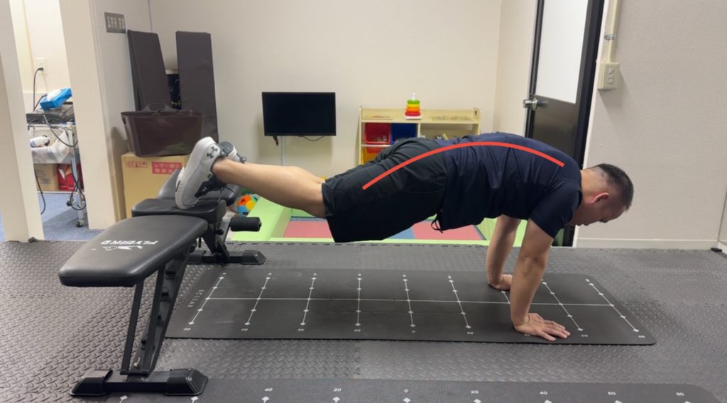 フォームが崩れると腰に負担が掛かるので気をつけて行いましょう。