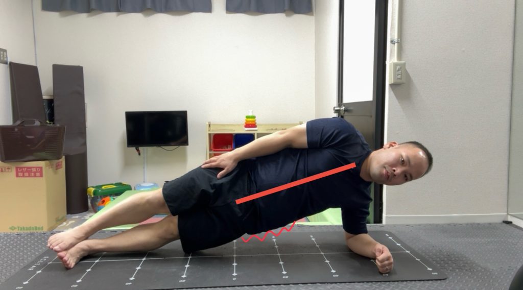 脊柱を横に曲げる力(体幹側屈)で全身を一直線にしたまま固定して、脇腹の腹斜筋群を鍛える