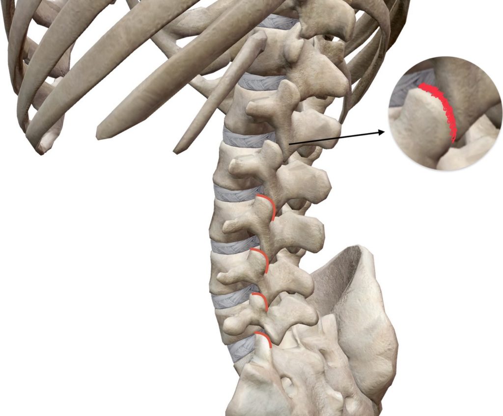 椎間関節性腰痛とは、腰椎(ようつい:腰の骨)にある「椎間関節」と呼ばれる関節が原因で起こる腰痛のことです。椎間関節は、背骨を後ろ側で支える小さな関節で、体を後ろに反らしたり、ねじったりする動きを助けています。この関節に炎症や変性(老化によるすり減り)が起こると、痛みが生じます。